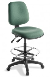 A versatile stool featuring a large seat and a ring operated adjustable seat height. Available with various options for multiple uses.