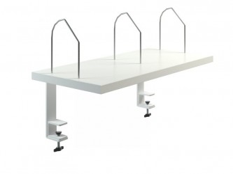 The desk shelf sits above your desktop and is fixed in place by 2 clamps.