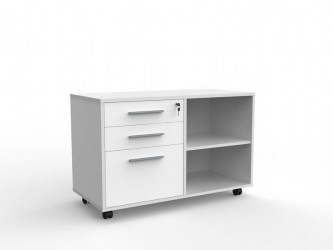The Roslyn caddy is a storage unit which is half drawers and half open shelf.