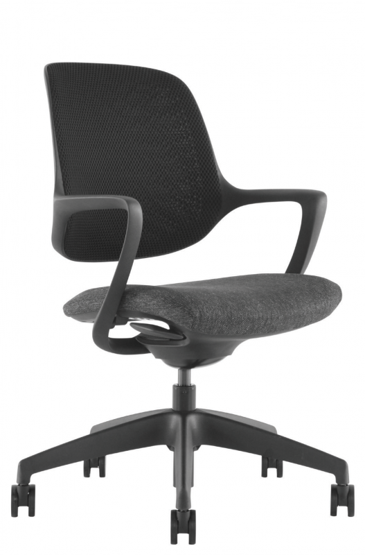 With its sculptural one-piece form, integrated armrests, and flexible mesh back, it offers subtle support with standout style. Available in four bold colour-blocked options. The synchronised seat and backrest move with you, while gas lift height adjustment and smooth soft roll castors make it a practical choice for agile working.